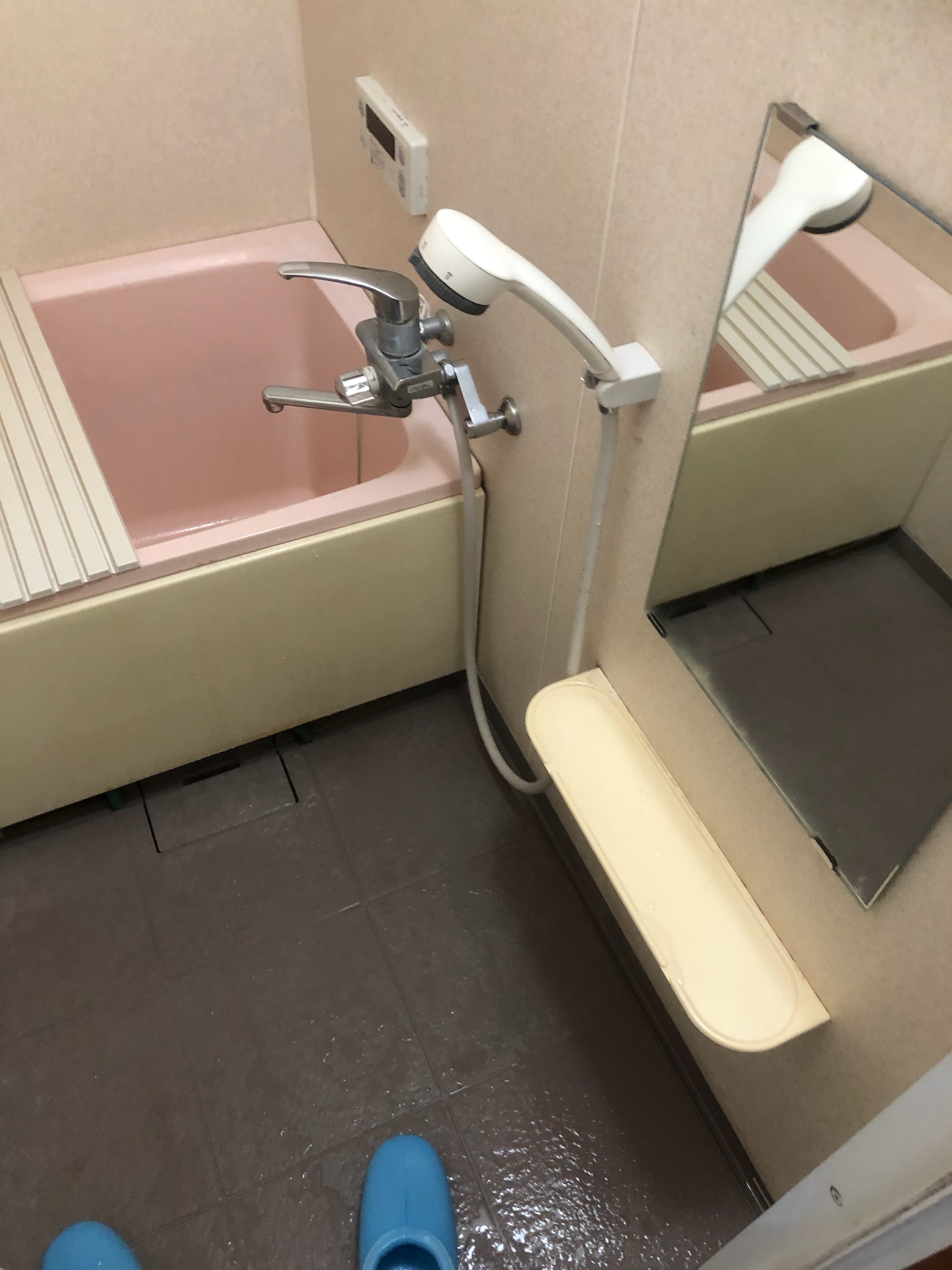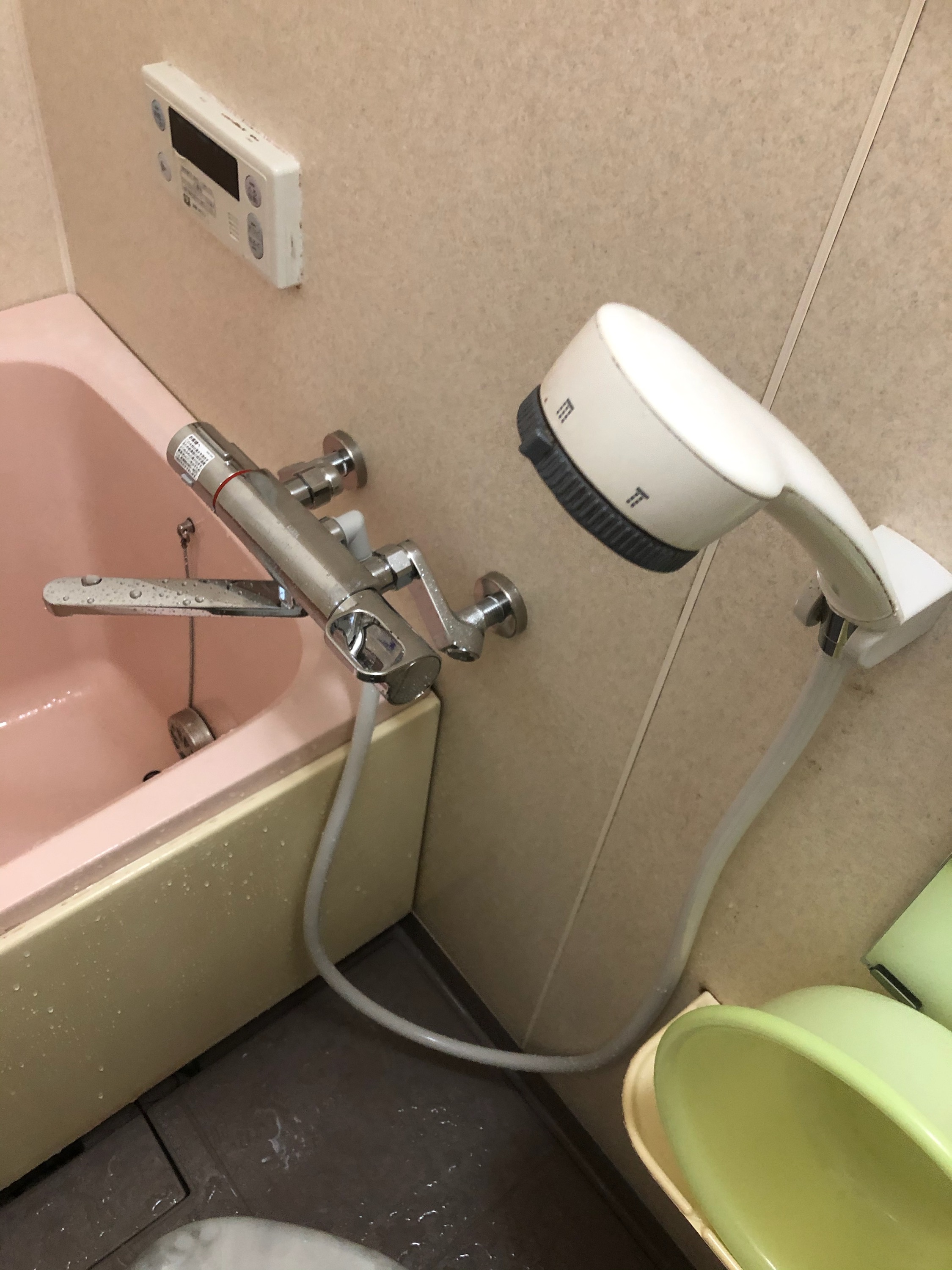 吹田市新芦屋で浴室混合水詮交換しました。シャワーは再利用です。